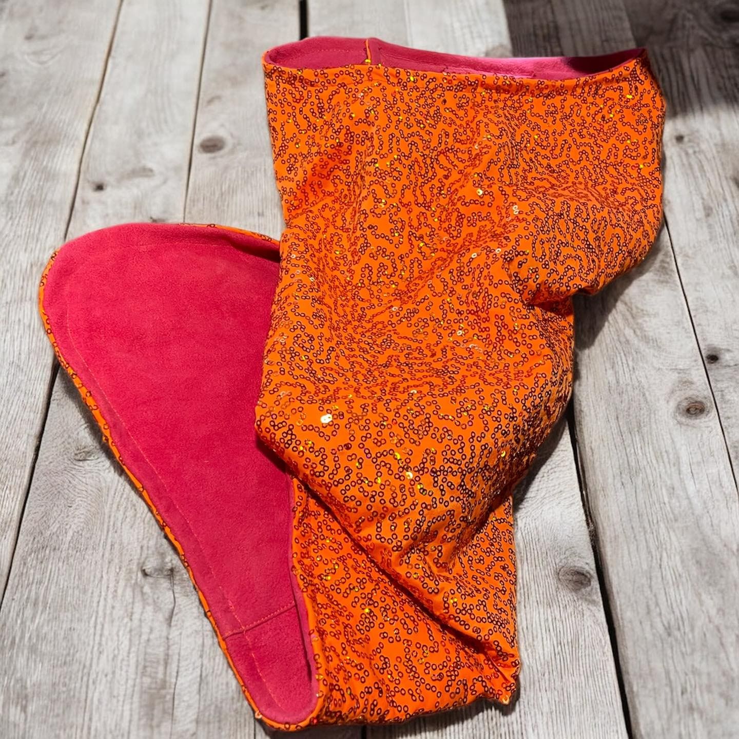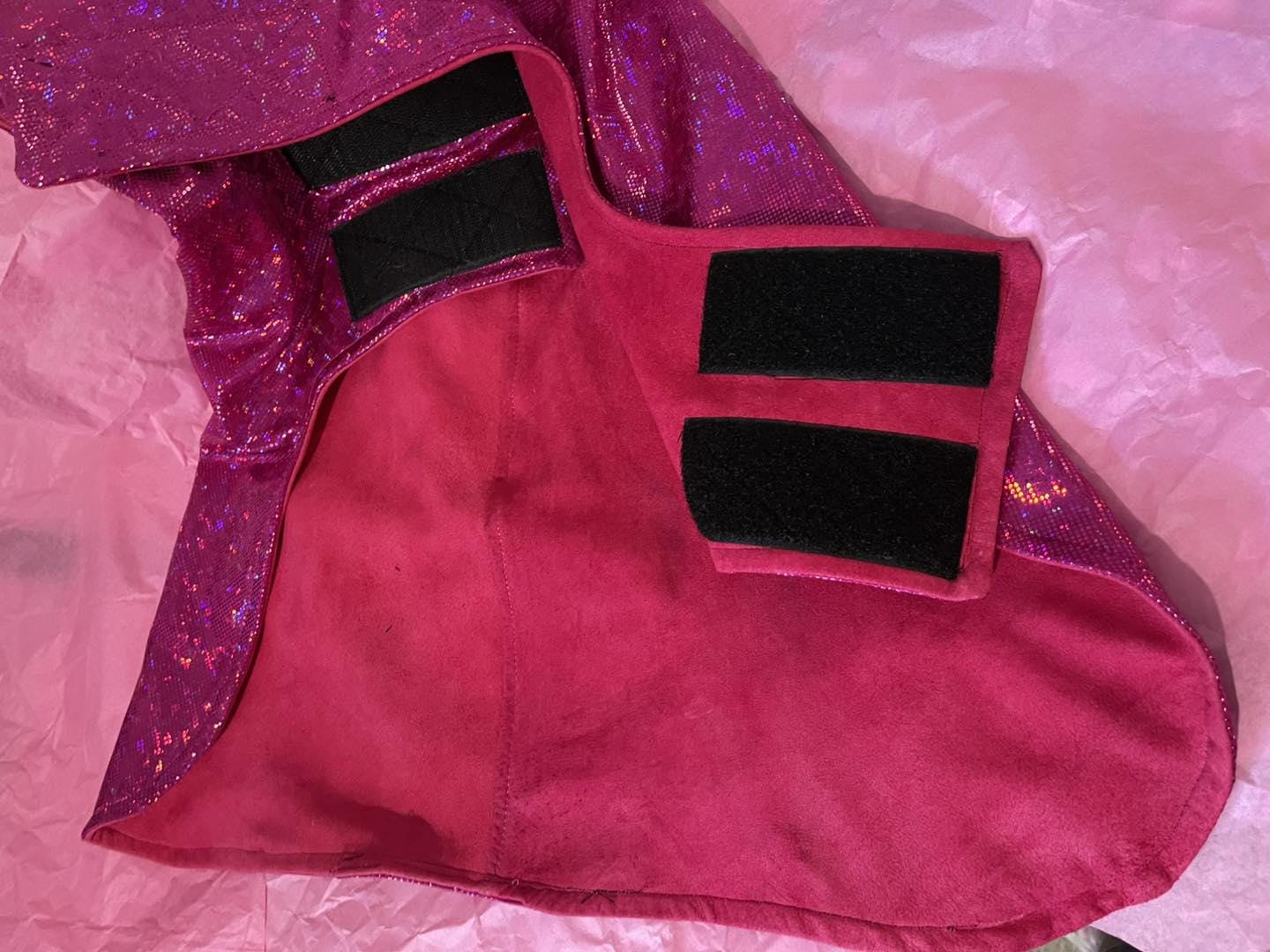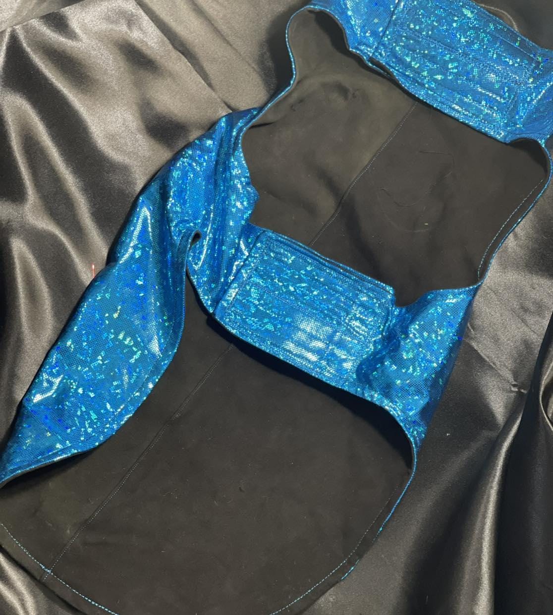 Cool coats are designed to provide a cooling effect for your dog after performance events or while waiting to be shown. The lining of my cool coats is made with genuine lambskin/chamois, which keeps the dog cool while also remaining dry and show-ready. Each one you can choose from any of the hundreds of fabrics I offer and then the liner is hand dyed (tie-dyed) and sealed to match! When you purchase, I will reach out and inquire about your color request and send you fabric options! I can also add sequin trim or beaded dangles for an extra charge.