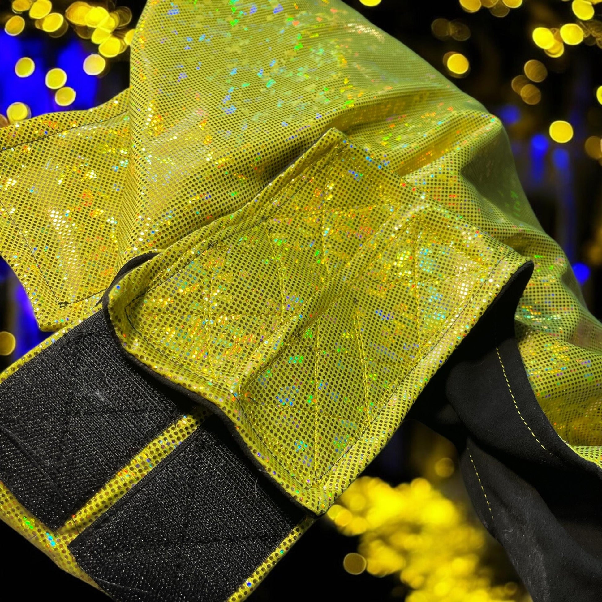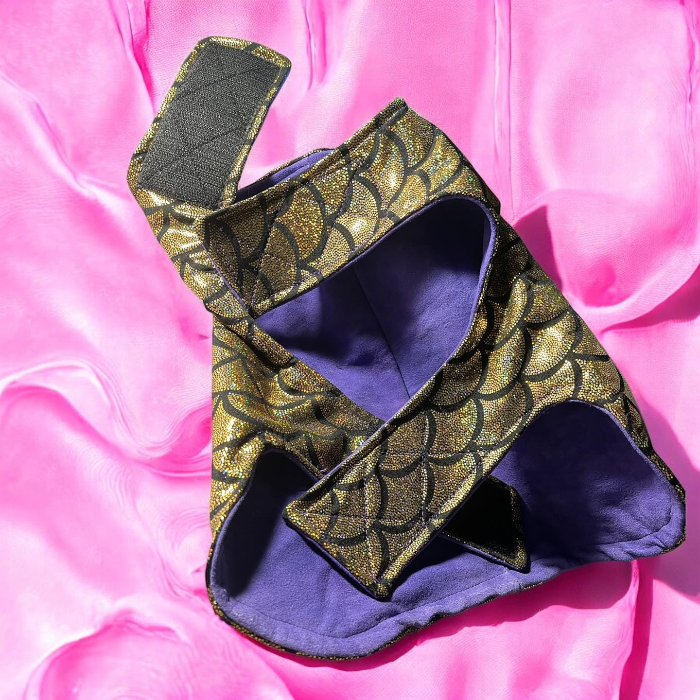 Cool coats are designed to provide a cooling effect for your dog after performance events or while waiting to be shown. The lining of my cool coats is made with genuine lambskin/chamois, which keeps the dog cool while also remaining dry and show-ready. Each one you can choose from any of the hundreds of fabrics I offer and then the liner is hand dyed (tie-dyed) and sealed to match! When you purchase, I will reach out and inquire about your color request and send you fabric options! I can also add sequin trim or beaded dangles for an extra charge.